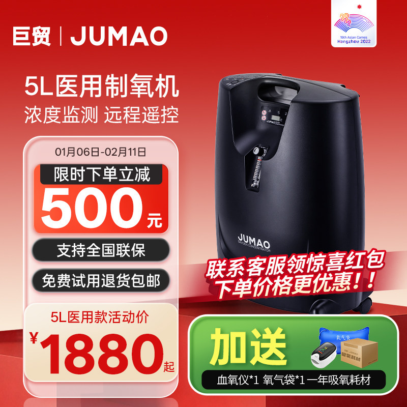 巨贸5L升制氧机家用老人吸氧机医用90%浓度孕妇家庭氧气机带雾化