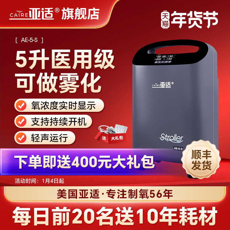 [新品]美国亚适老人家用5升制氧机医用级氧气机带雾化小型吸氧机