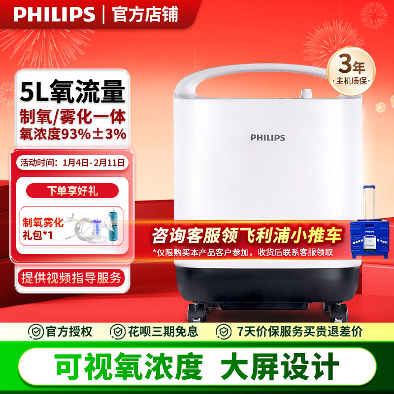 飞利浦5L制氧机5升医用家用吸氧气机老人保健家庭孕妇氧疗带雾化