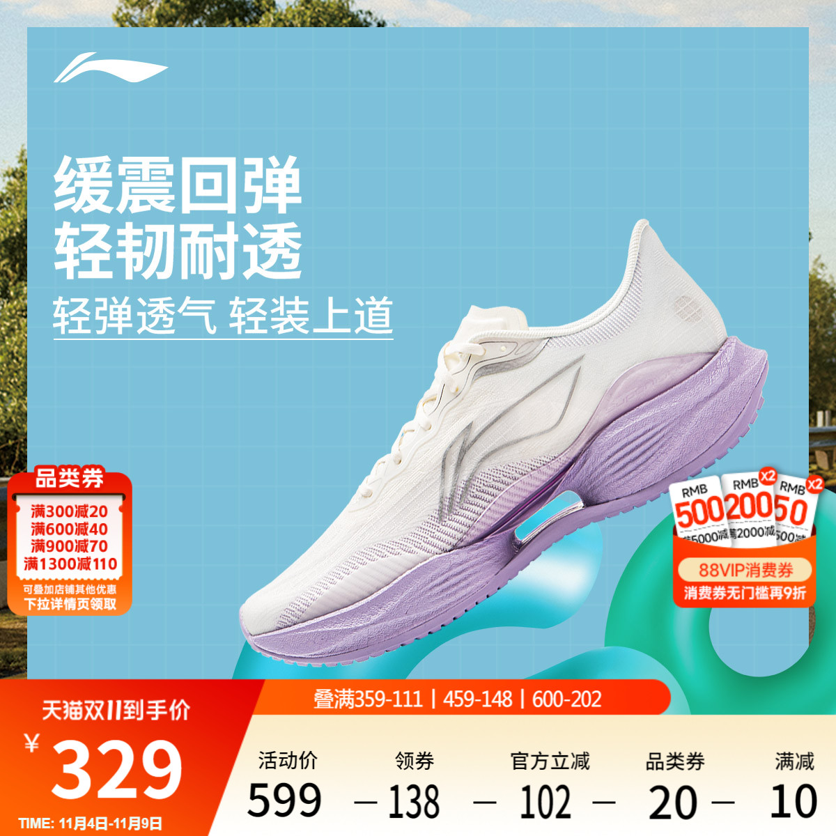李宁超轻21䨻科技女子超轻质超高回弹耐磨透气网面跑步鞋ARBV006