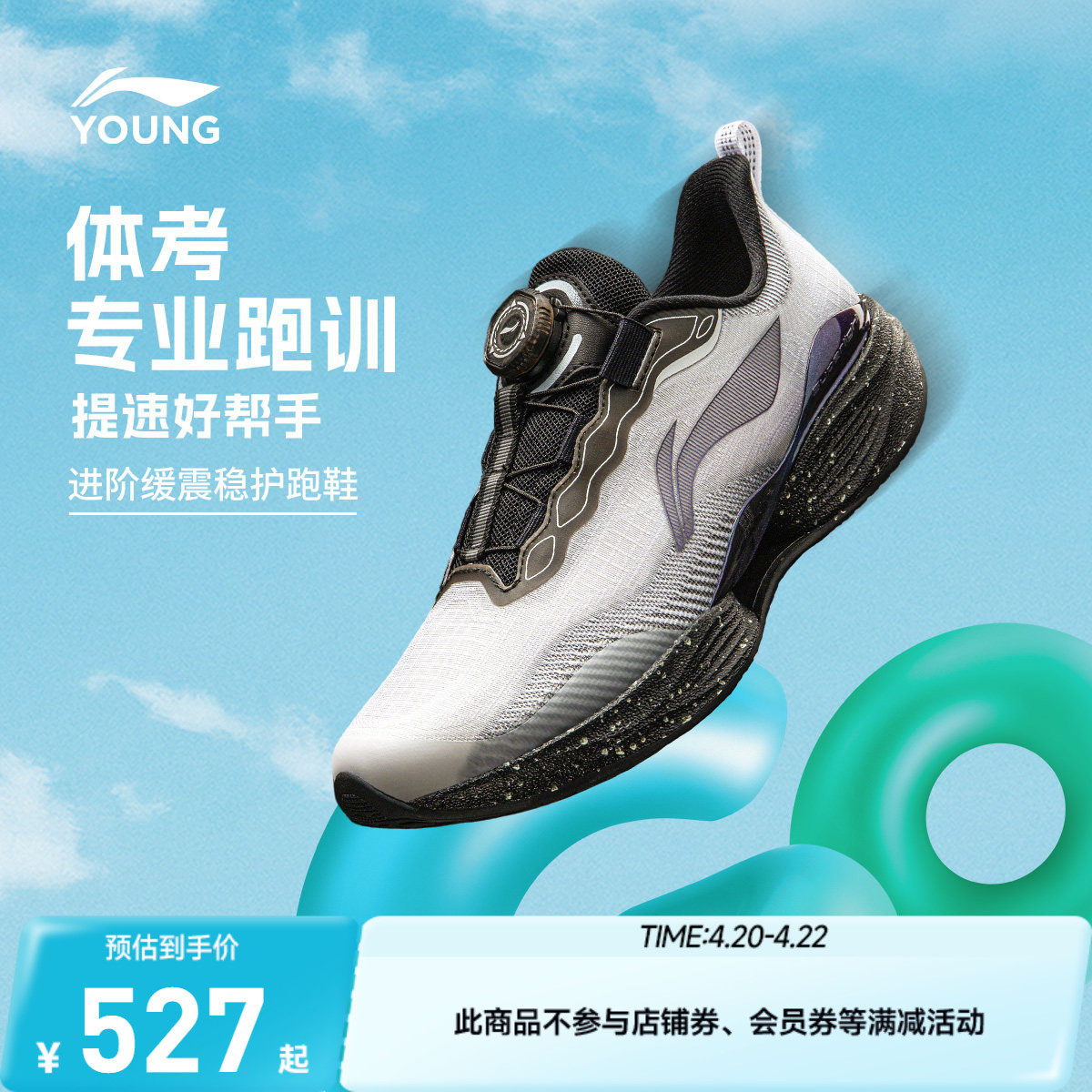 李宁超轻22竞速轻质缓震回弹体考体测轻便透气跑步鞋ARBV001