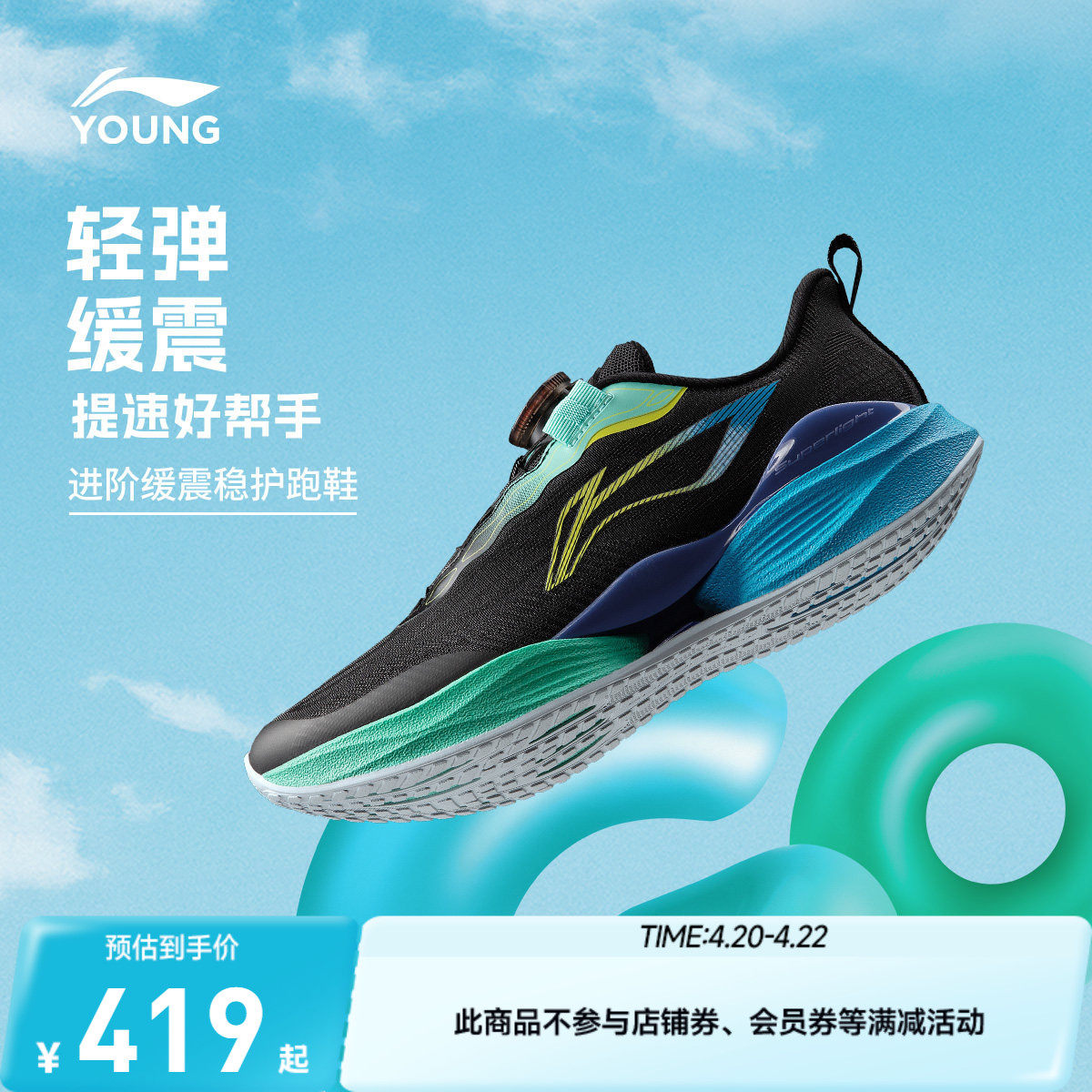 李宁童鞋超轻22跑步鞋男女大童2026新款䨻丝轻量高回弹低帮童鞋