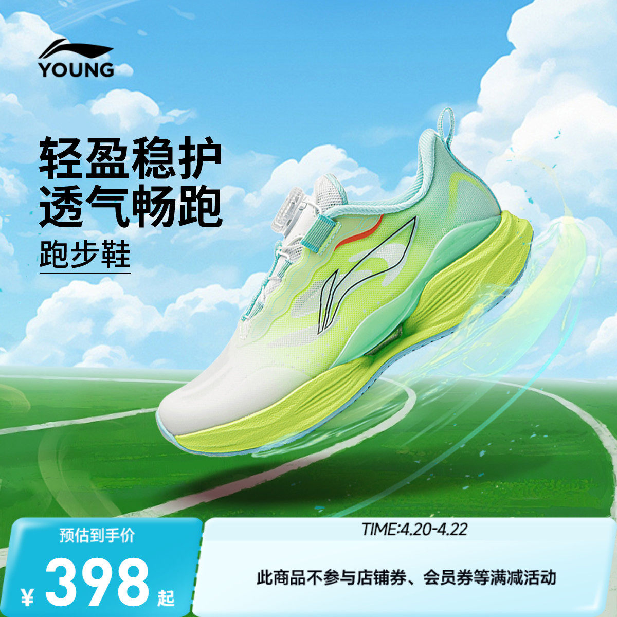李宁儿童运动鞋男女大童2026春夏新款青少年超轻22旋纽扣专业跑鞋