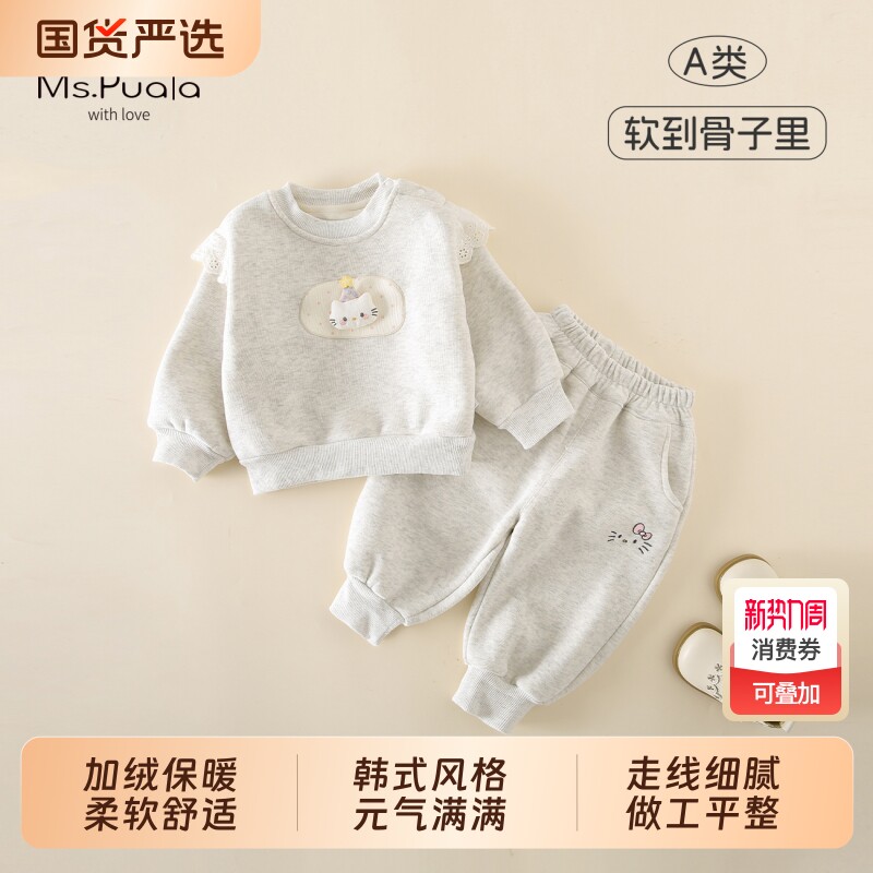 Ms.Puala女童宝宝套装加绒卫衣裤童装婴幼儿秋冬舒适两件套韩版