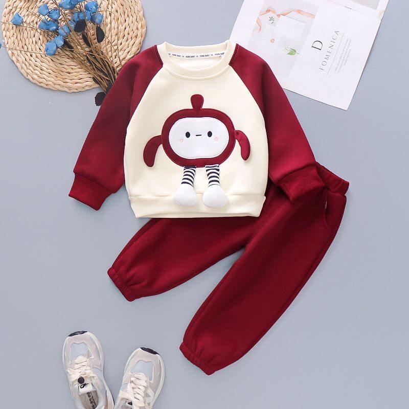 宝宝加绒卫衣套装婴儿保暖套装男女儿童秋装秋冬季加厚两件套卫衣