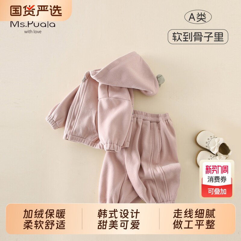 Ms.Puala女童宝宝套装加绒卫衣卫裤童装婴幼儿秋冬舒适两件套套装