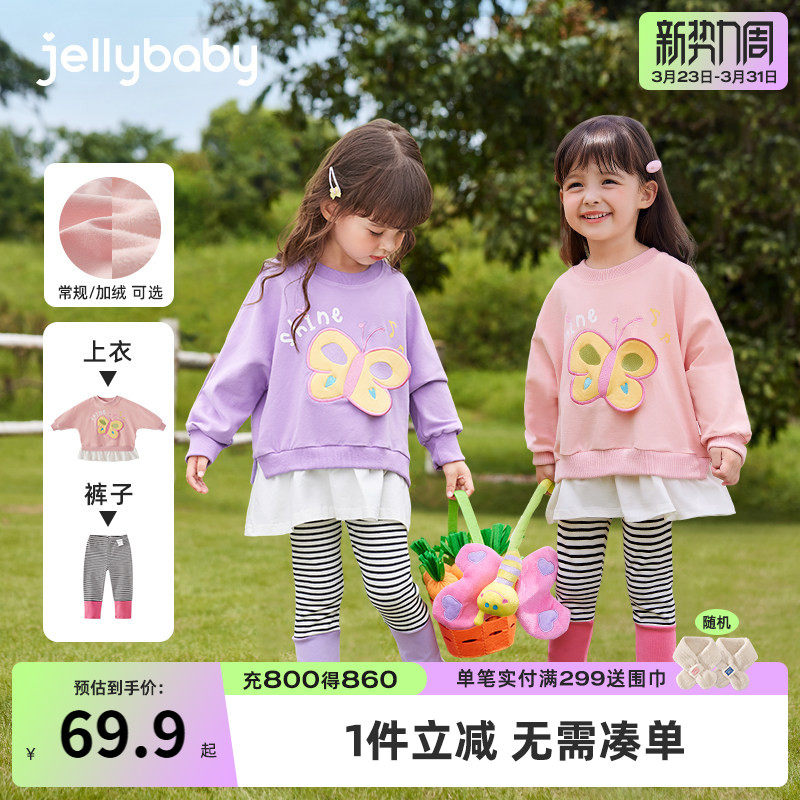 [抗菌绒]女童春款套装小儿童加绒卫衣两件套薄绒童装宝宝春装衣服