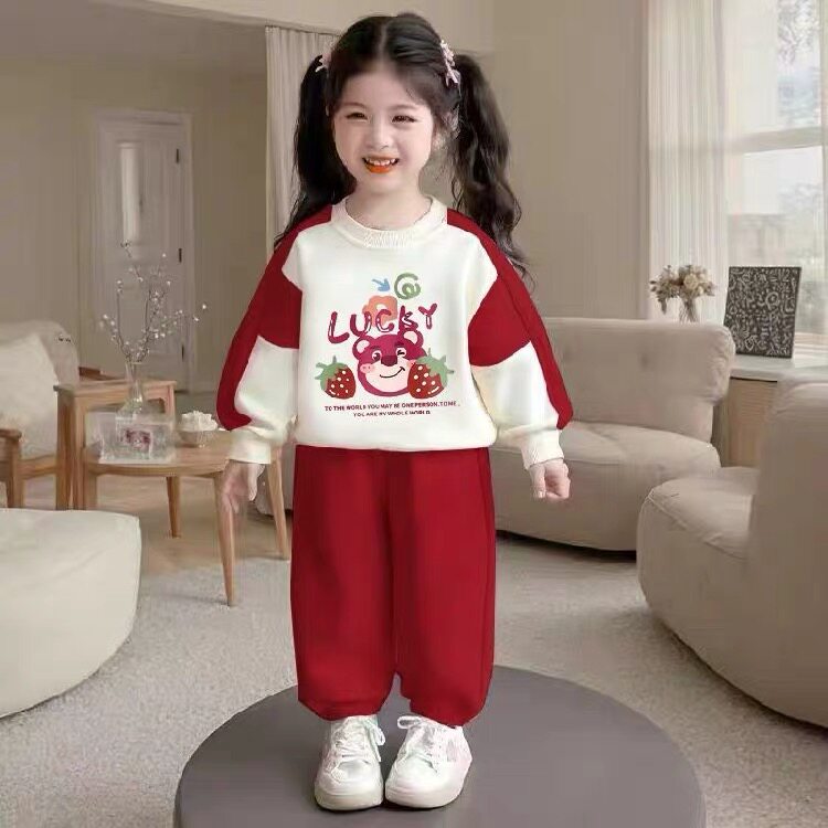 米米哈罗女童加绒套装冬装2025新款儿童新年装女孩卫衣长裤两件套