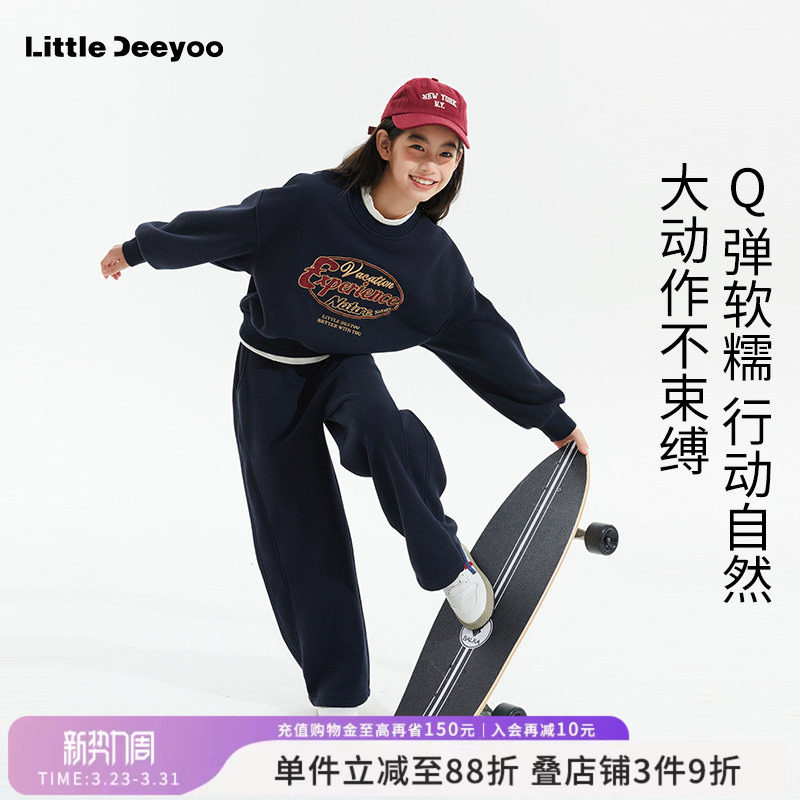 LD童装加绒加厚卫衣运动套装2026新款春秋大童宽松两件套女童秋冬