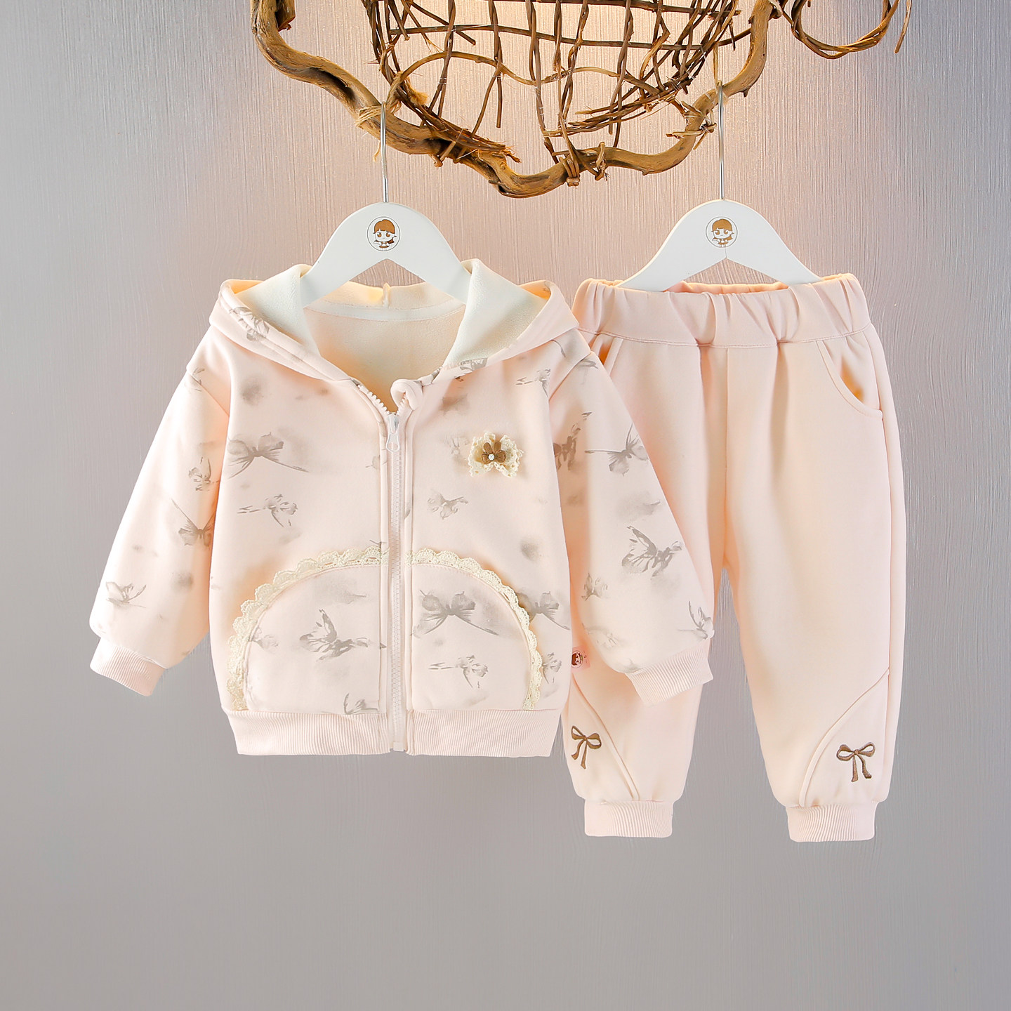 小女童宝宝春装加绒卫衣服两件套装婴儿童秋冬季洋气甜美1一2周岁