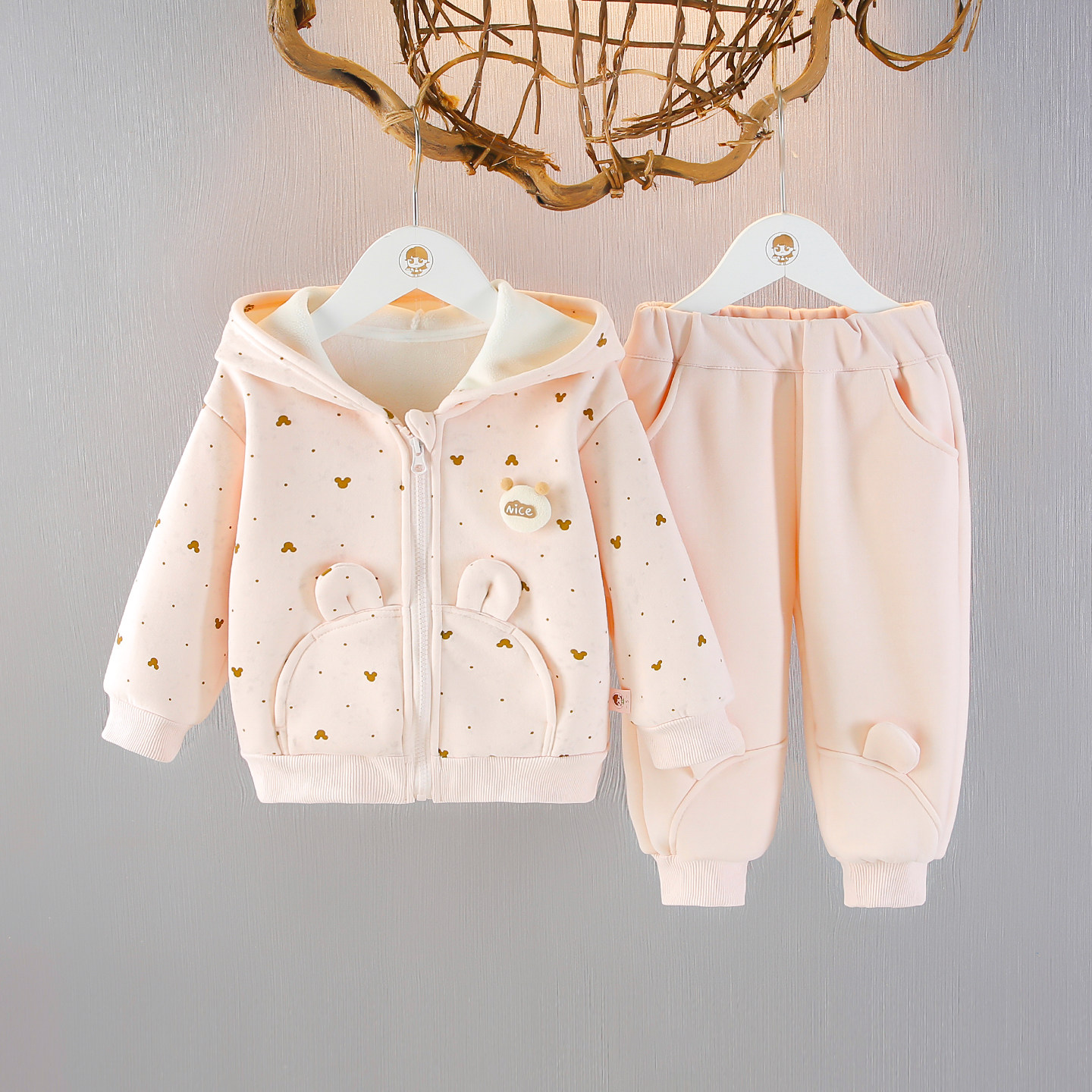 Ms.Puala女童宝宝套装加绒卫衣外套卫裤婴幼儿秋冬韩系两件套粉色