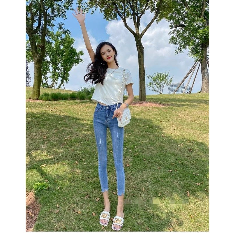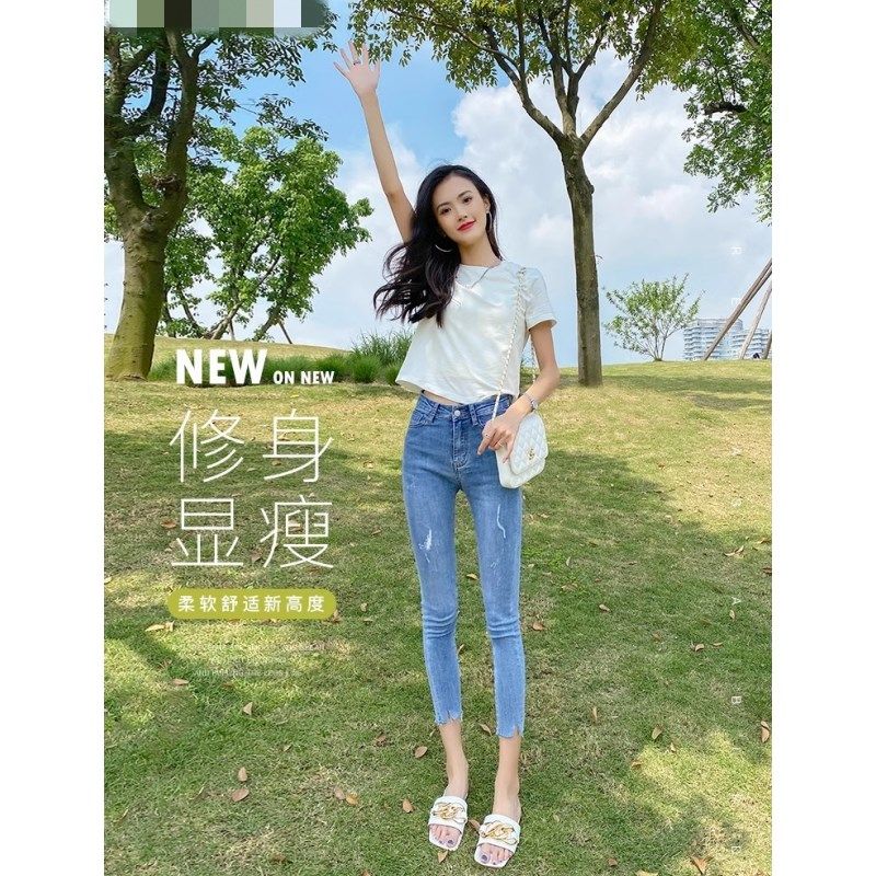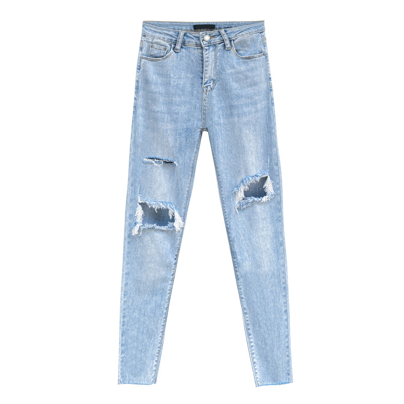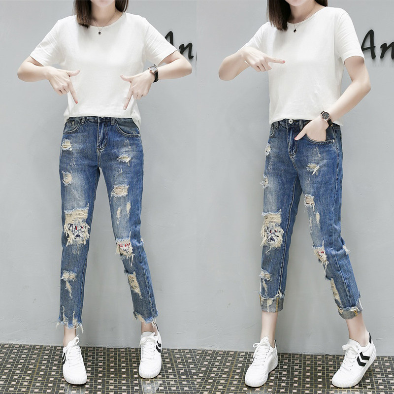 - 破洞牛仔裤 女 九分裤