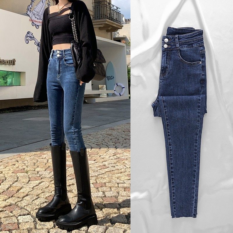 - 高腰牛仔裤女秋九分裤