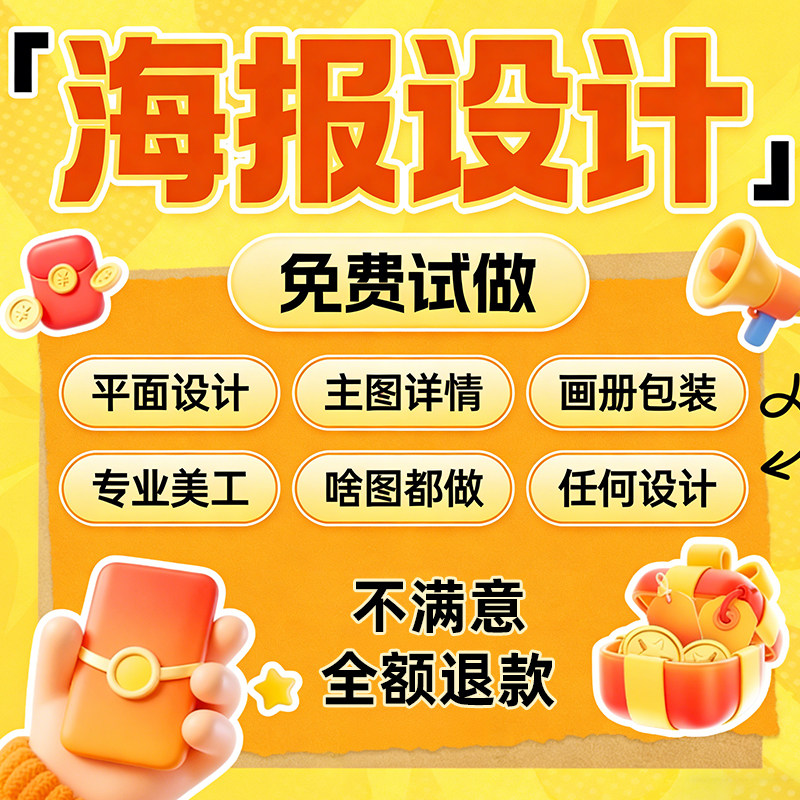平面广告海报设计制作图片美工包月主详情页包装宣传单ps做图设计