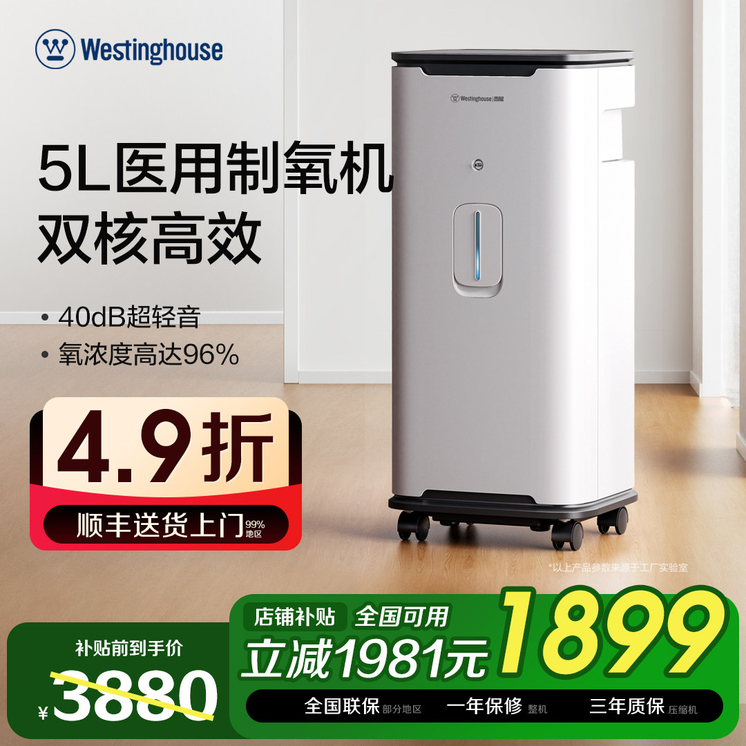 美国西屋5L升医用制氧机家用吸氧机老人孕妇肺气肿呼吸专用氧气机