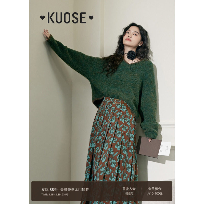SOMSOM/索玛设计感宽松绿色套头针织衫长袖叠穿上衣女装短款毛衫
