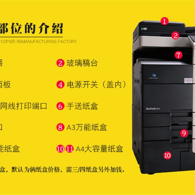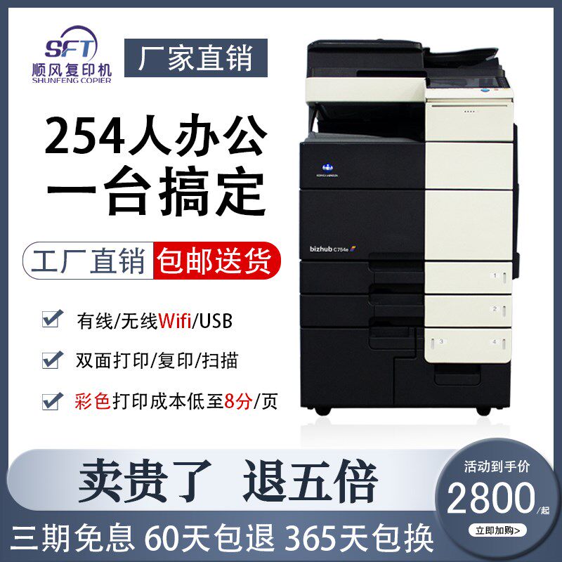 柯美黑白复印机彩色复印机754/554/454/364打印复印扫描图文广告