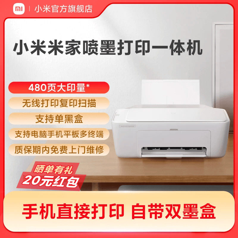 小米米家喷墨打印一体机打印作业复印证件扫描存档多功能家用彩色黑白学生专用打印机手机平板电脑无线三合一