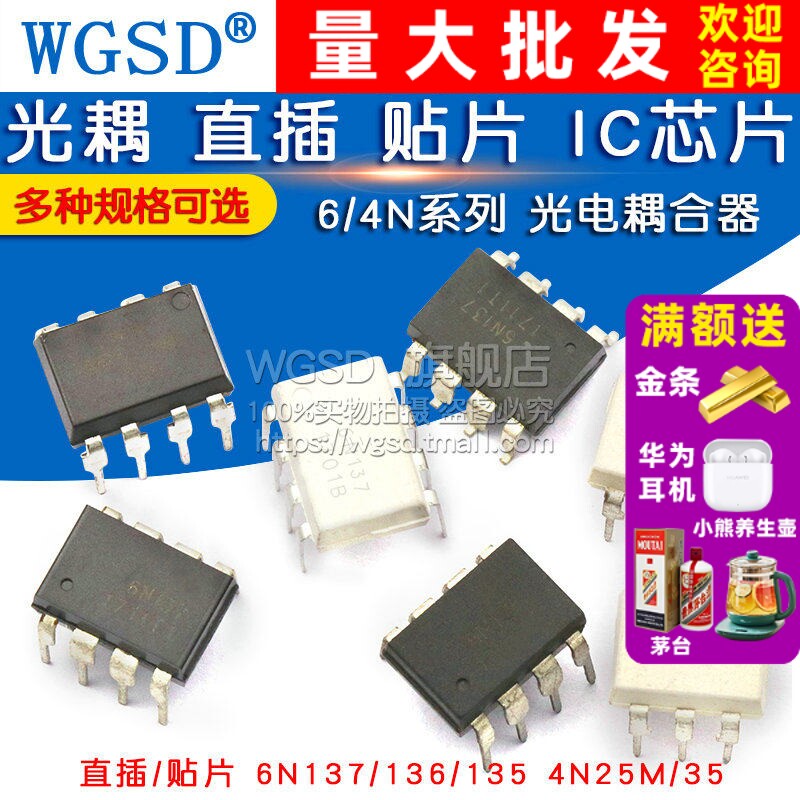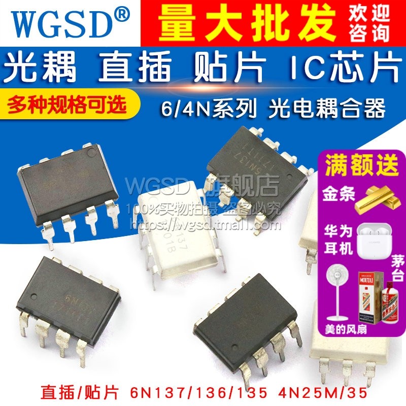 6N137 高速光耦6N136 4N25 4N35光电耦合器 直插DIP 贴片IC芯片