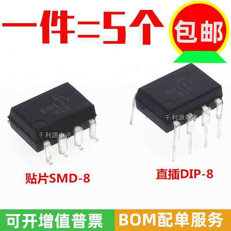 全新包邮5只 6N137 EL6N137 A6N137 直插/贴片高速光耦DIP/SOP-8