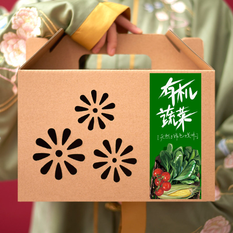 新鲜有机蔬菜包装盒小番茄空盒子通用西红柿礼盒手提高档牛皮纸箱