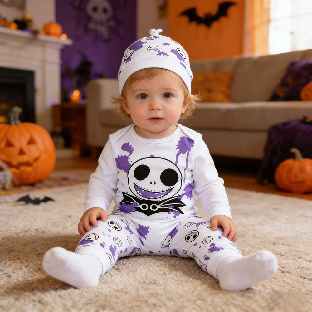 婴儿童装春秋套装男童小童宝宝连体衣屁屁裤三件套万圣节新款服饰