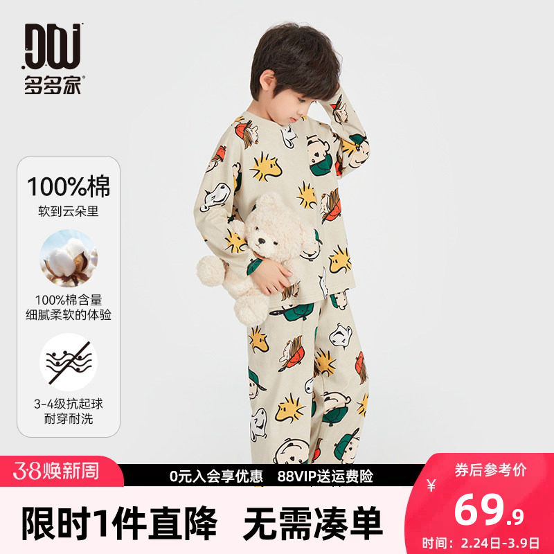 多多家男童睡衣纯棉满印内衣套装2026新款春秋款儿童中大童家居服