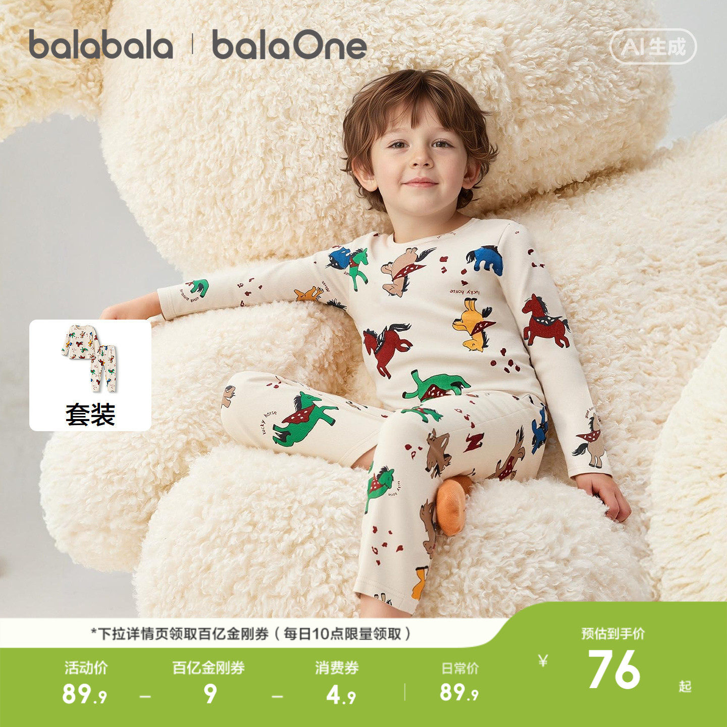 【balaOne】巴拉巴拉男童女童内衣套装儿童2件套新款童装2026春秋