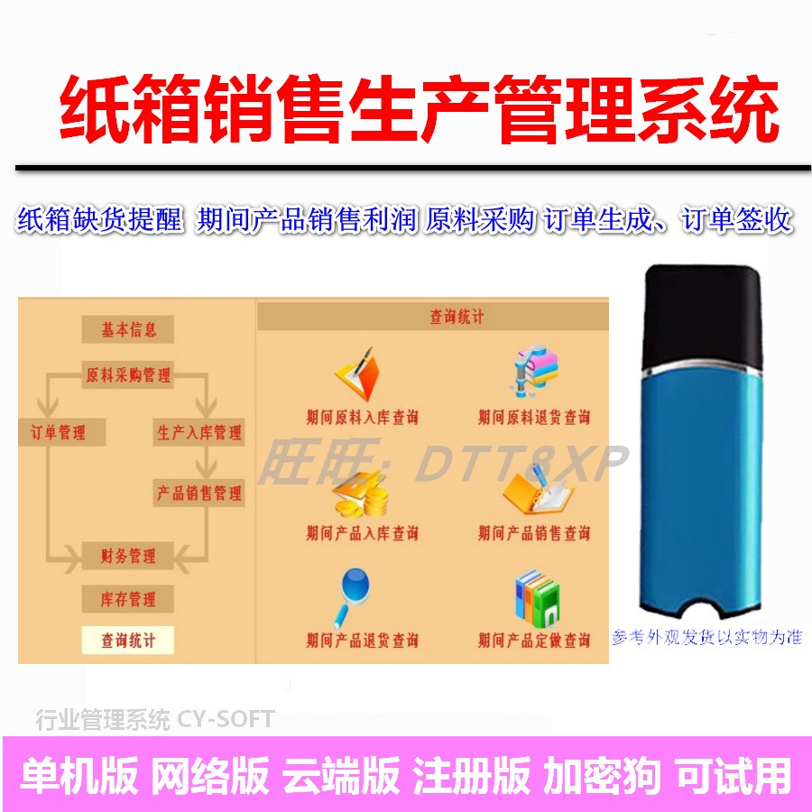 纸箱销售管理系统软件加密狗 生产入库 缺货提醒欠款统计利润财务