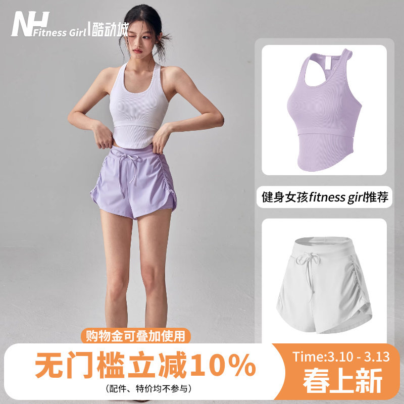 健身女孩防走光运动短裤薄夏季假两件高腰抽绳跑步瑜伽三分裤套装
