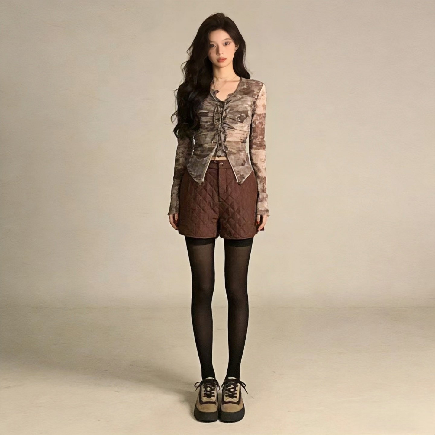 2026春秋复古高腰宽松显瘦短裤女 夹棉加厚保暖阔腿外穿打底靴裤