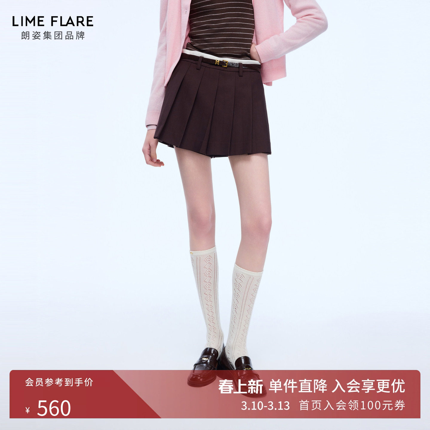 朗姿莱茵福莱尔法式时尚格蕾系短裤羊毛高腰A字短裙百褶裙裤26春