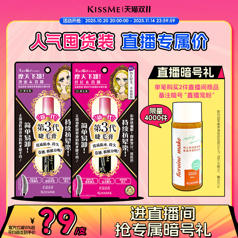 【直播间专属】kissme3代精湛防水睫毛膏打底不易晕染两支装