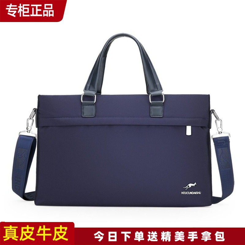 亏本冲量袋鼠真皮正品男包手提包男士商务单肩包男电脑包休闲横款