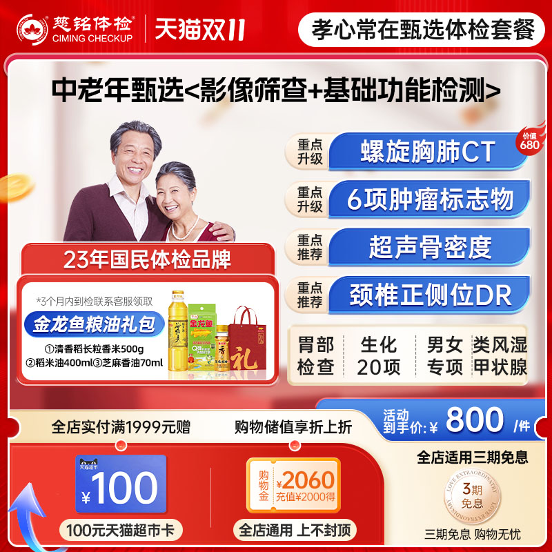 慈铭体检头部胸部双CT套餐中老年爸妈父母等北京上海广州全国通用