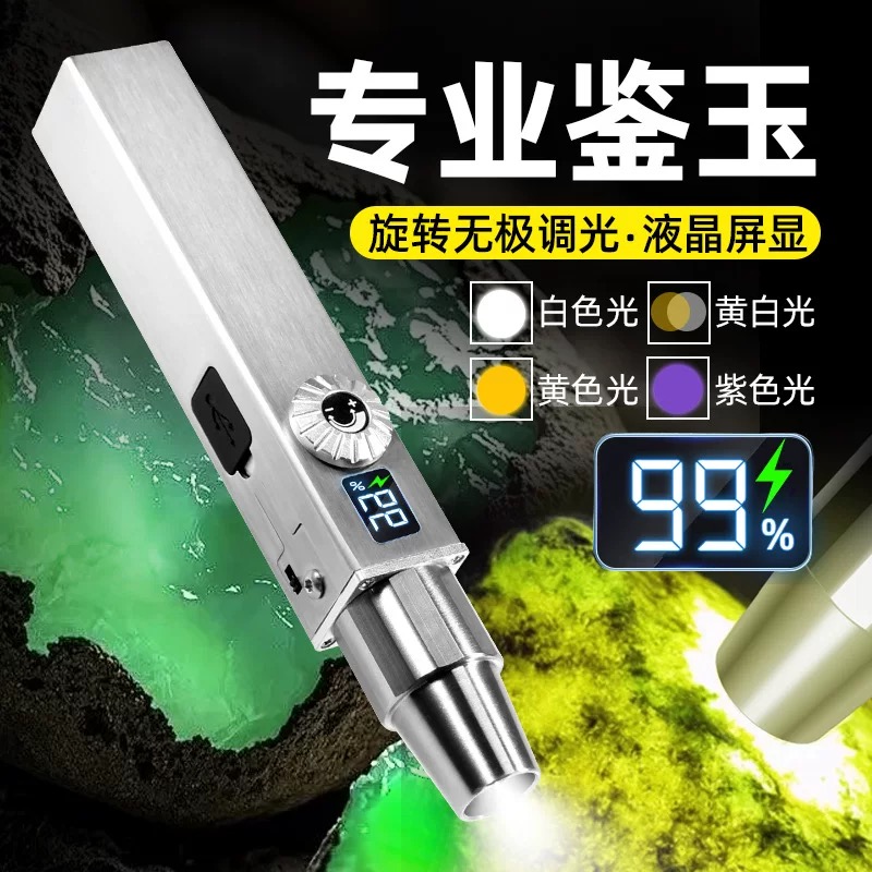 无极调光三色看照玉石手电筒专用专业强光翡翠鉴定usb充电小口径