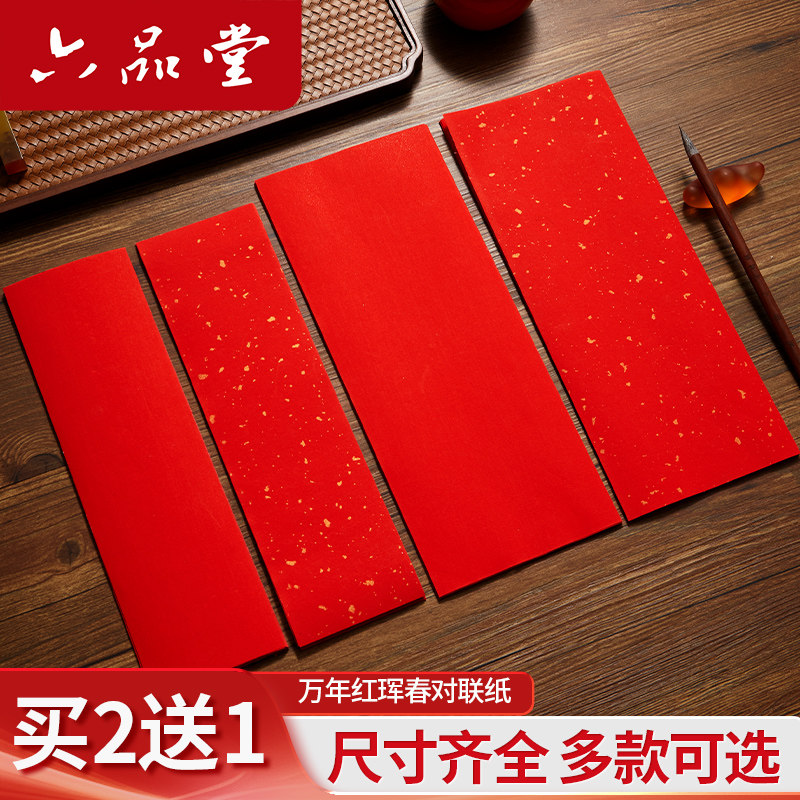 六品堂宣纸挥春春联纸四字对联纸洒金红纸手写空白万年红纸自写专用2026马年春节迷你小对联纸毛笔福字珲春