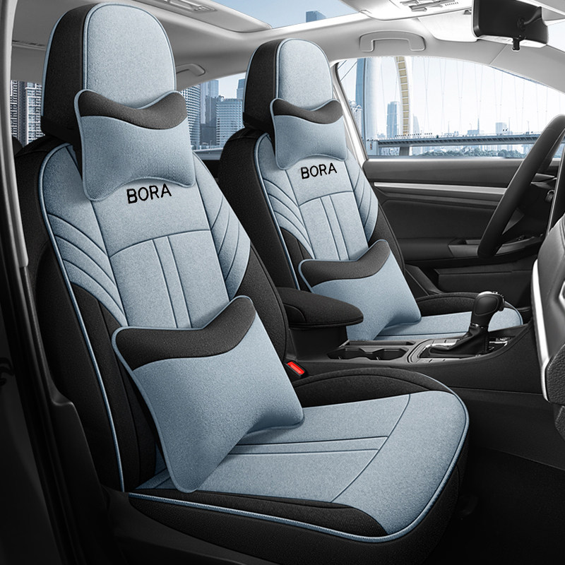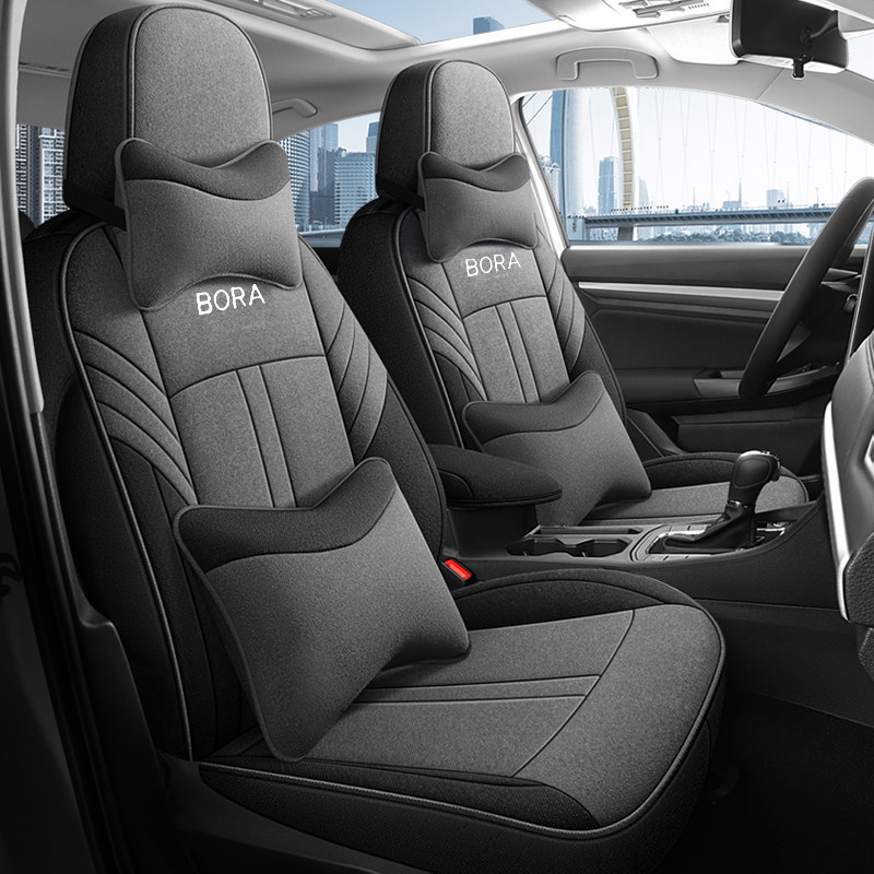 大众宝来桑塔纳朗逸捷达全包汽车座套四季通用棉麻汽车坐垫雪佛兰