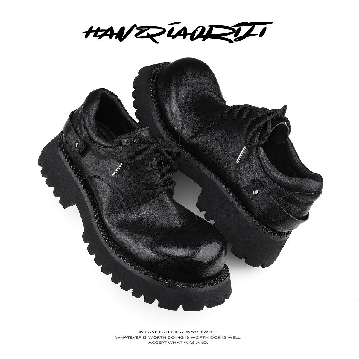 韩桥日记[黑血系列]头层牛皮大头德比鞋男潮厚底增高休闲通勤皮鞋