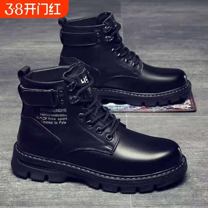 马丁靴男2025新款冬季男鞋韩版潮流男士加绒靴子百搭高帮休闲皮鞋