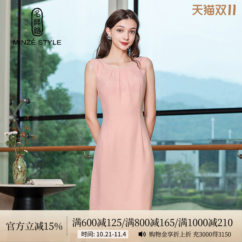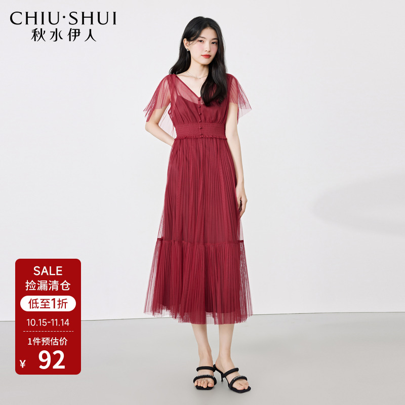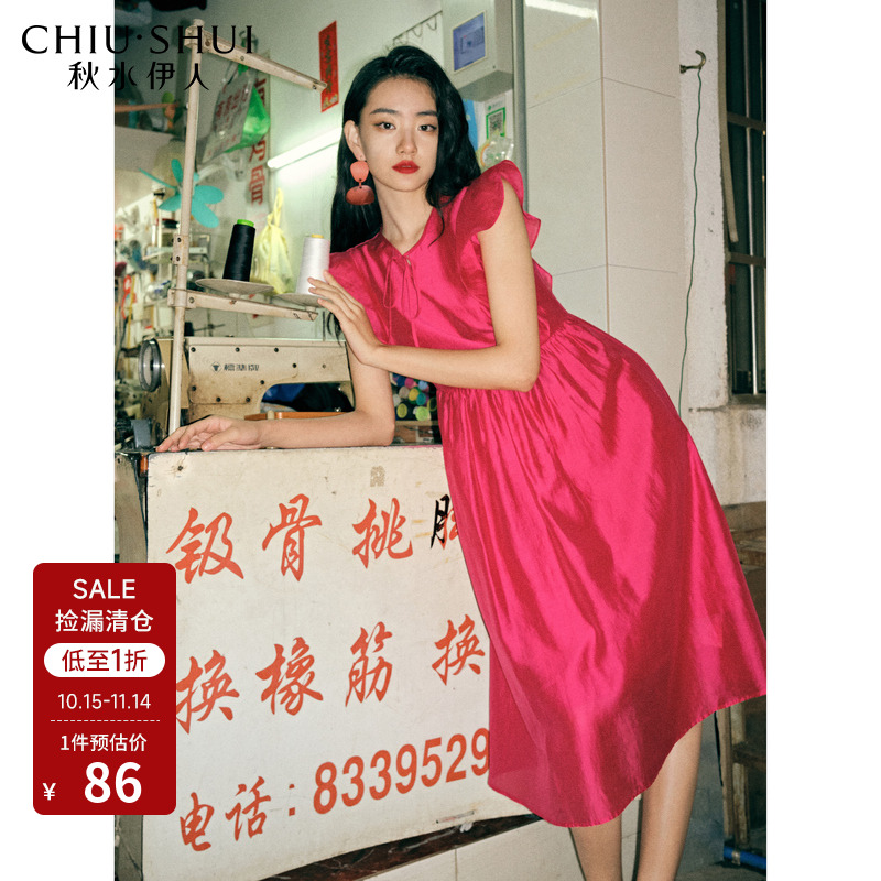 秋水伊人断码清仓法式优雅休闲设计感粉橘连衣裙夏季女装气质裙子