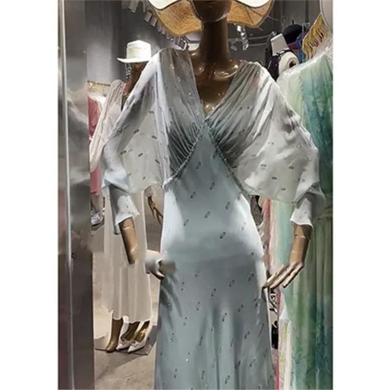 法式miu系V领波点灰色连衣裙夏季女装小香风千金感小个子收腰短裙