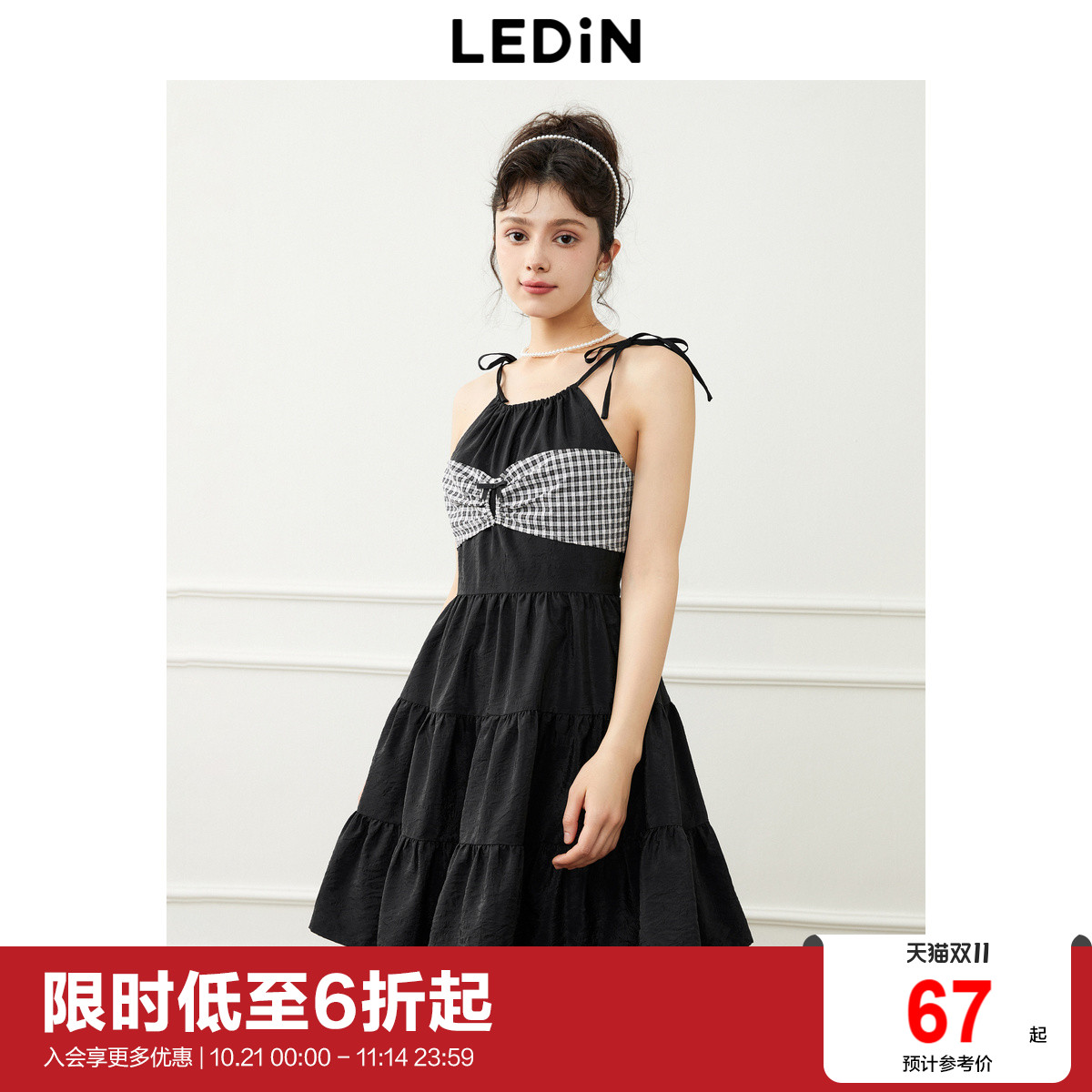 良良家设计感拼接不规则蕾丝背心连衣裙女夏季新款复古叠穿长裙子