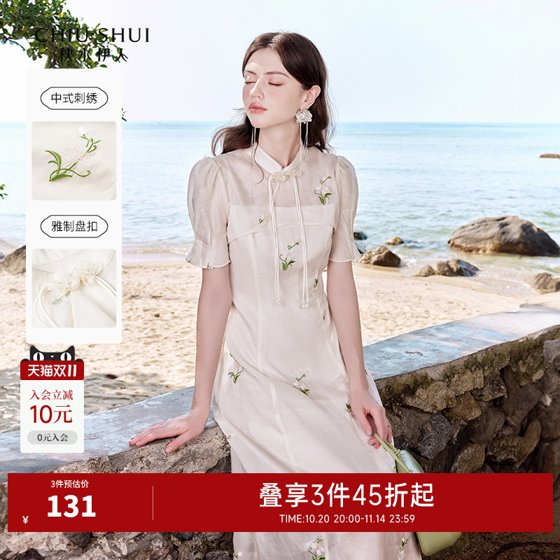 秋水伊人奥莱优雅新中式连衣裙夏季女装设计感短袖衬衫式旗袍裙子