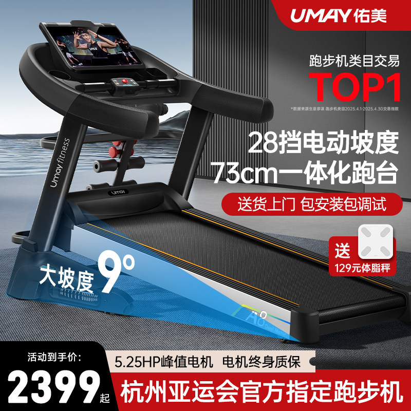 佑美A8跑步机家用款健身房专用可折叠超静音爬坡机女室内大型男士