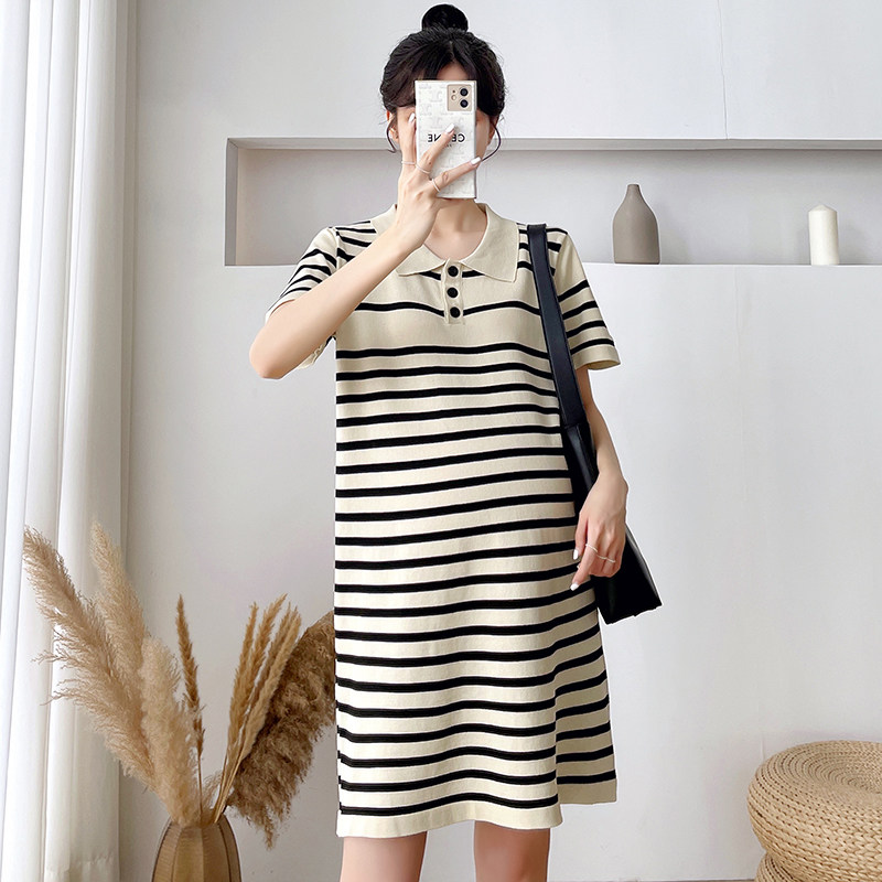 孕妇2021新品夏装韩版时尚条纹B针织裙小个子洋气潮妈裙夏季连衣