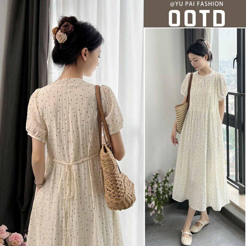 2024新品夏装孕妇连衣裙时尚款小清新显瘦波点气质宽松连衣裙过膝
