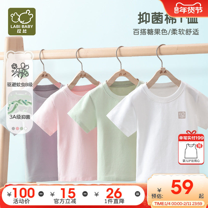 拉比童装短袖2025新品夏装男女宝宝上衣抑菌防蚊圆领儿童短袖t恤