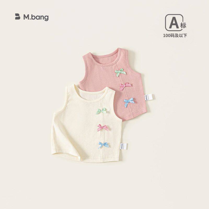 小一家邦选新品夏装女童洋气圆领上衣纯色内搭女宝宝蝴蝶结吊带无