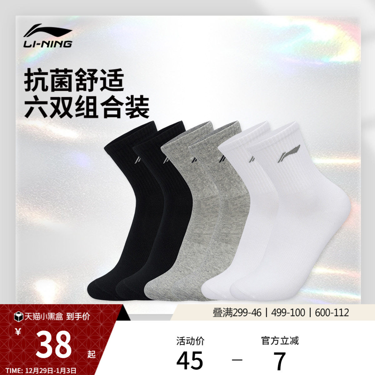 李宁袜子男冬季跑步中长袜组合吸汗透气短袜运动健身舒适棉袜女款